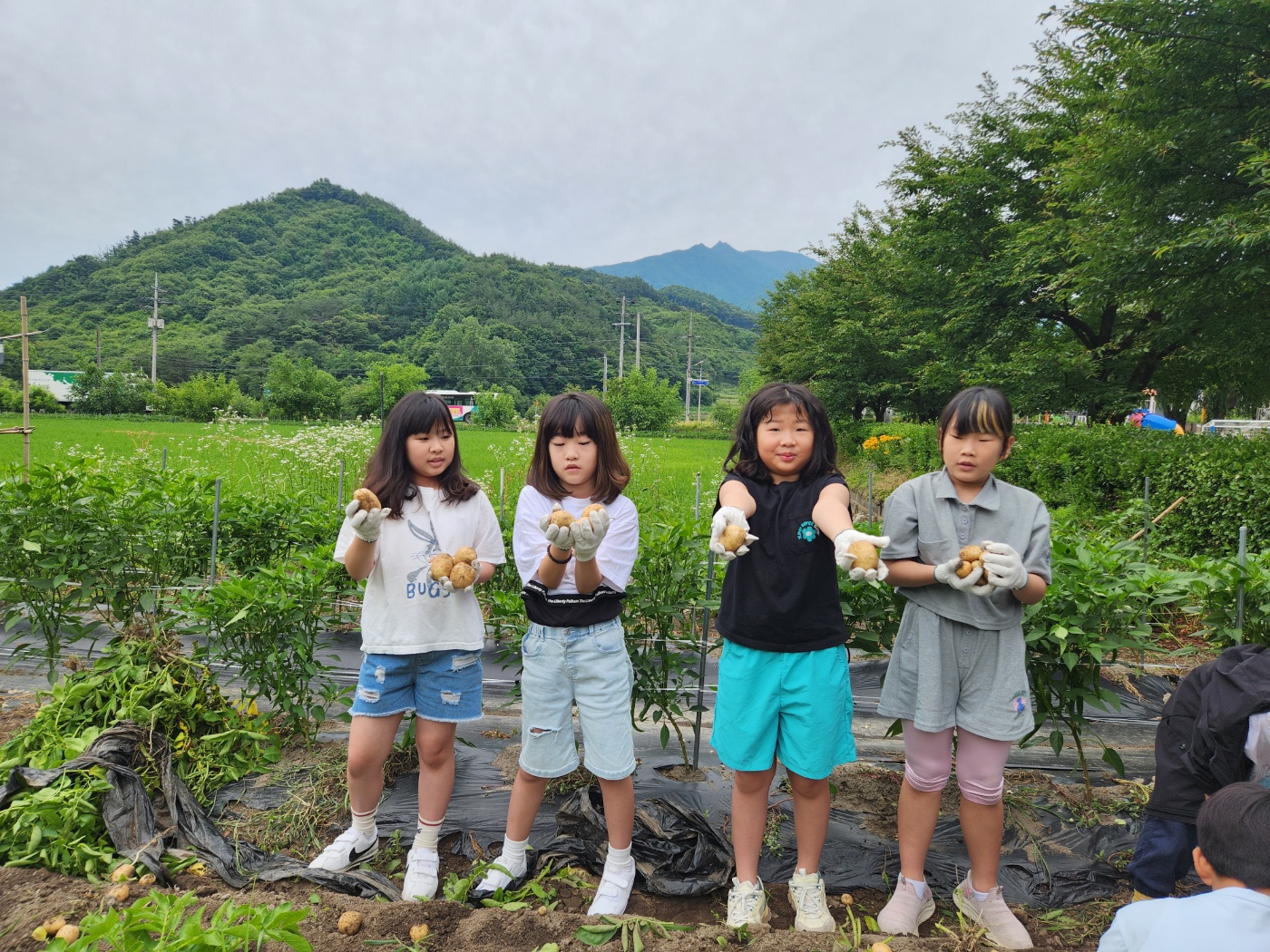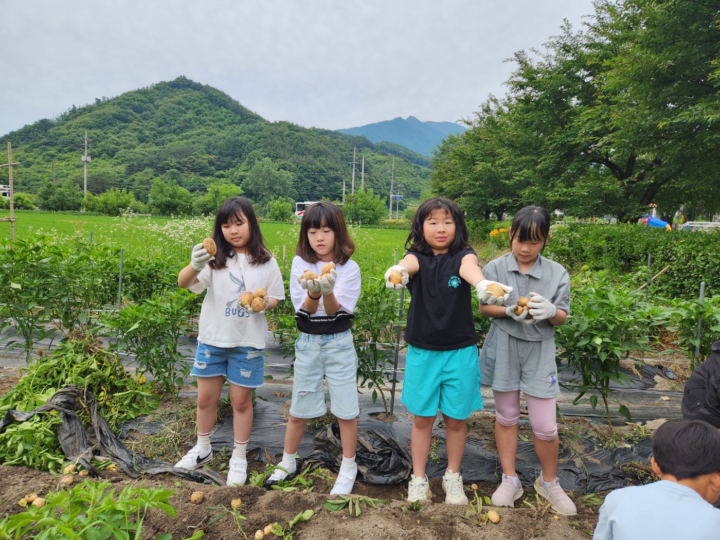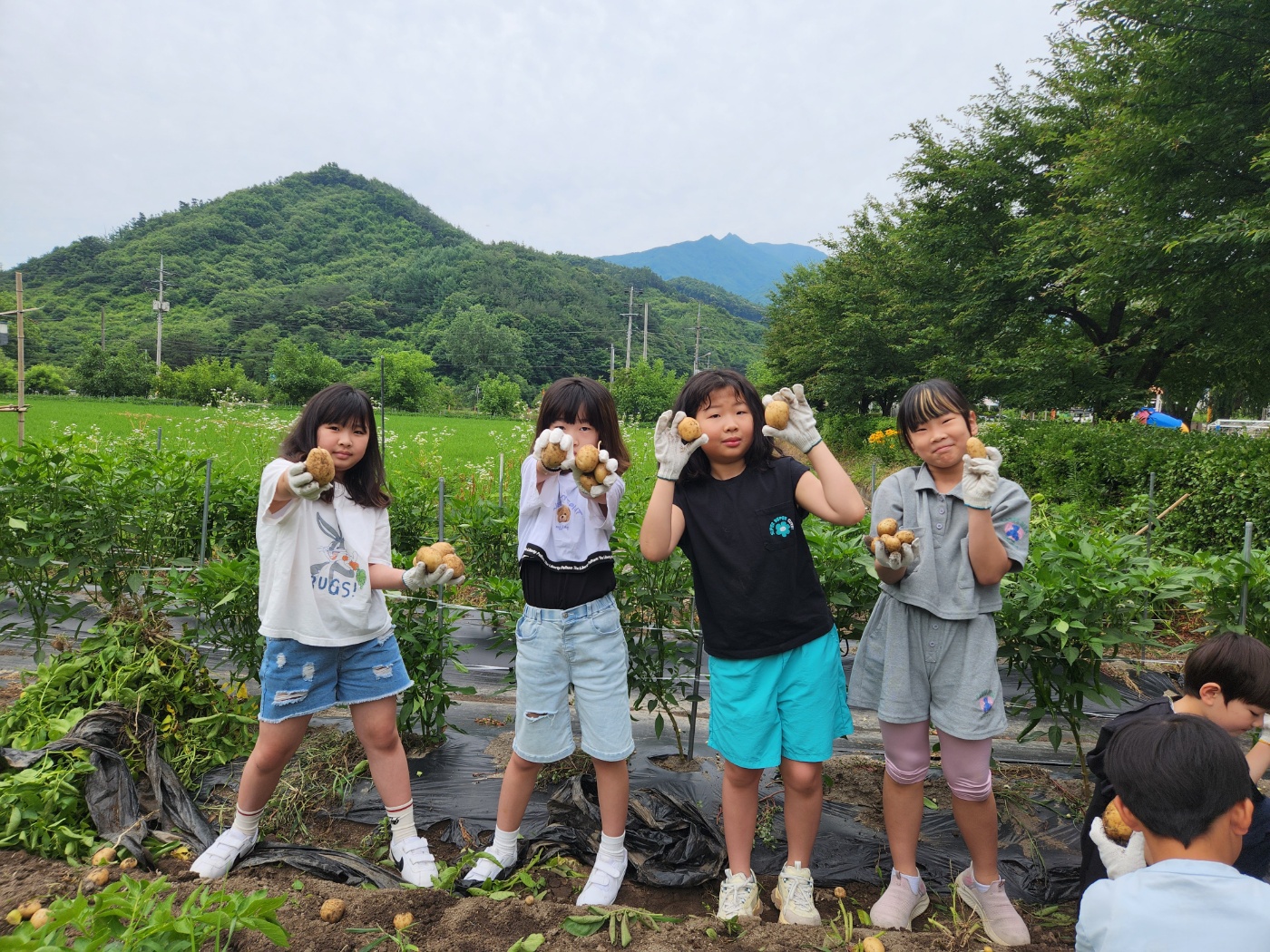 학교 내 텃밭에서 감자를 캤습니다.